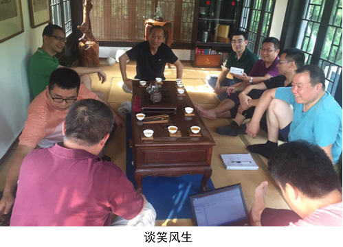 7月12日下午四点,正佳国际集团总裁及集团核心高层成员召开了集团战略发展研讨会议。 “赏仙湖美景,品芦渡香茗。”在风景如画的仙湖湖畔一慈芦汀乡渡竹茶馆内,竹藤桌椅,紫砂茶具,环境优雅轻松,大家围坐在禅房内,边欣赏湖光山色边品尝清茶幽香,也许是因为受环境影响,沟通也变得轻松随性,每一个话题都能聊得十分起劲;