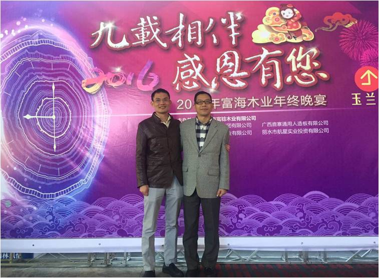1月17日晚,供应链公司总经理王风受邀参加深圳富海木业有限 公司“2015年年终聚会暨公司九周年庆”活动。 双方进行具体业务沟通,在国内代采项目基本达成一致,对方计划年后与正佳供应链公司开展合作。