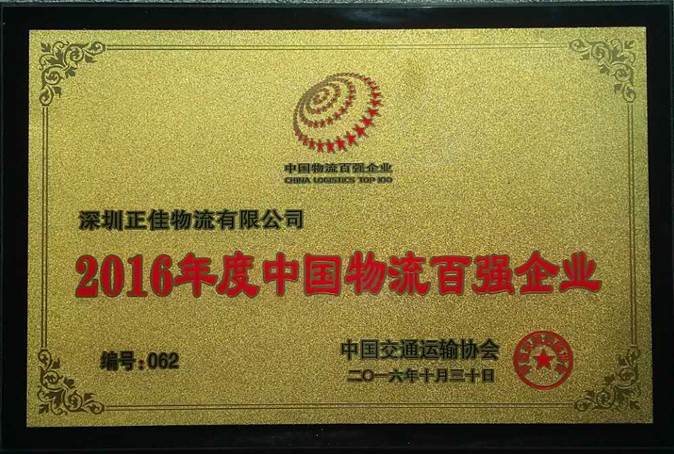 热烈祝贺深圳正佳物流有限公司连续十年荣获“中国物流百强企业”及”全国先进物流企业”称号