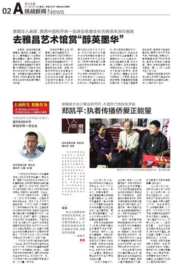 郑凯平说话铿锵有力,他身上既散发着企业家精明干练的气息,又体现出一种热心公益的慈善精神。将自己的事业做大做强的同时,郑凯平还不遗余力地扶贫帮困,促进社会和谐发展。当选市侨企联会长后,他把发扬侨界热心公益事业、勇担社会责任的传统放在了更加突出的位置。