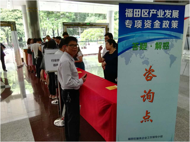 7月14日下午,福田企业翘首以盼的“2016年福田区产业发展专项资金政策”终于出台, “政策宣讲会”在区政府大礼堂隆重举行,约900家企业,一千多代表参加。大家认真聆听了福田区企业服务中心专家的详细解读, 会后还参加了会场外专设的专家现场咨询。正佳国际集团总裁办主任余柳和副主任温同庆参加了学习。