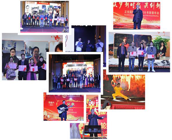 2018年2月1日晚,正佳国际集团2018年新春晚会在深圳皇庭V酒店隆重召开。 此次晚会以“筑梦新时代,共创新辉煌”为主题,展示出了正佳国际集团企业风采。晚会以年度优秀人员颁奖典礼为重点,公开奖励2017年表现突出的3个杰出团队、10位优秀员工、 4位优秀主管及 4位优秀经理 。 晚会节目精彩纷呈,有舞蹈、武术和合唱表演,并且现场评出了最佳的三个节目进行表彰。抽奖环节更将晚会氛围推向最高潮,奖品非常丰厚,令惊喜连连。晚会在一片欢乐祥和的气氛圆满落幕。