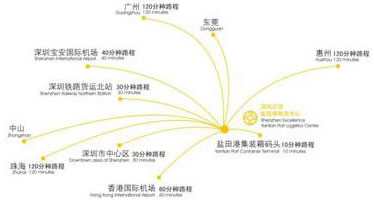 紧邻盐田港集装箱码头,与多条高速公路相连,经平盐铁路与京广、京九、广梅汕铁